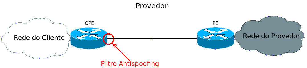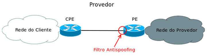 Além disso, ela não evita que os clientes façam ataques em redes de terceiros. Portanto essa configuração deve ser aplicada em conjunto com a configuração anterior feita no PE para minimizar os ataques de spoofing.